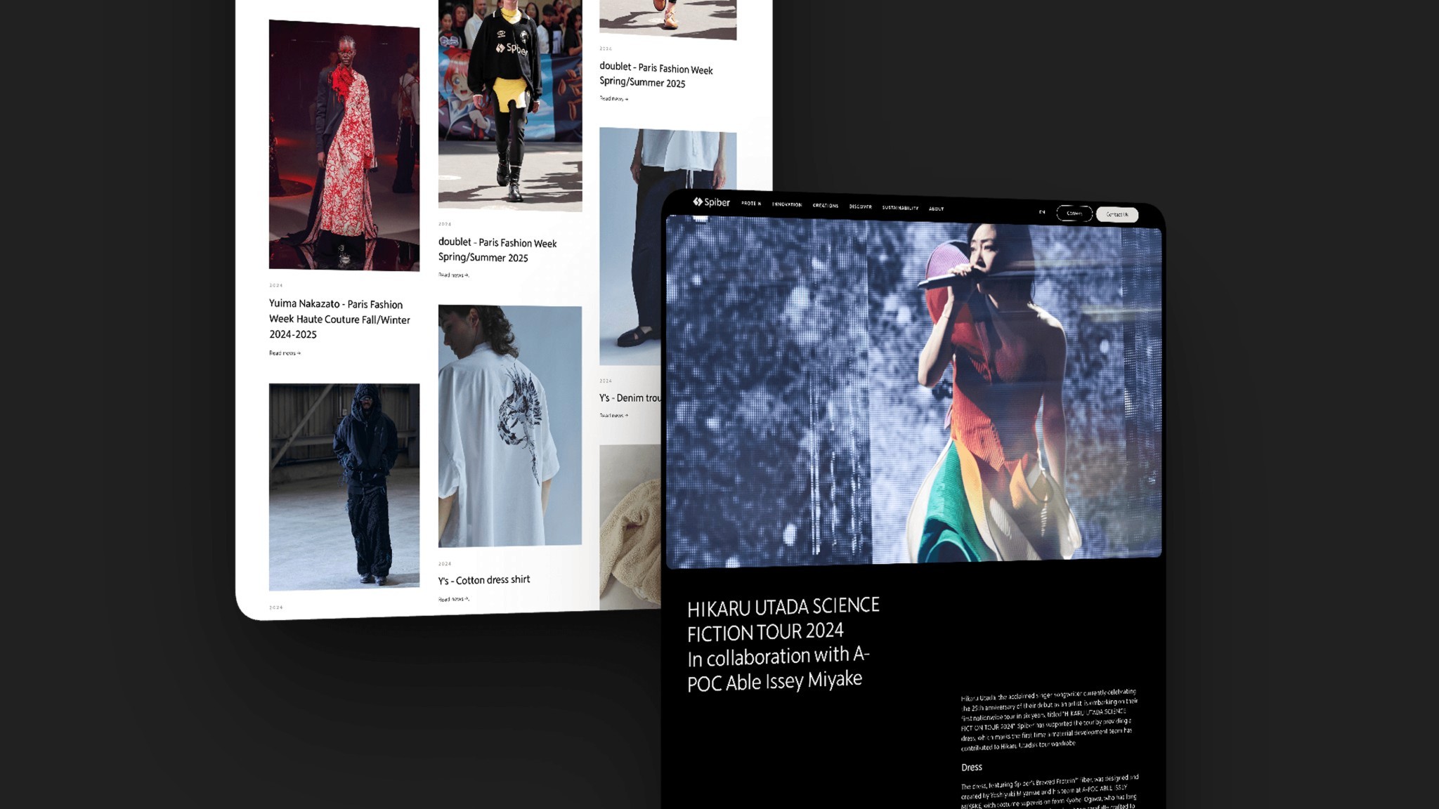 We decided to create a dedicated Creations page to act as a living gallery of Spiber’s actual output. Instead of just reading about technical partnerships, users could now see the collaborations, the Biosphere Circulation Project, and the general vibe of the company through photos and snapshots. This allowed the official news section to stay formal while giving the rest of the site the space to feel more approachable.