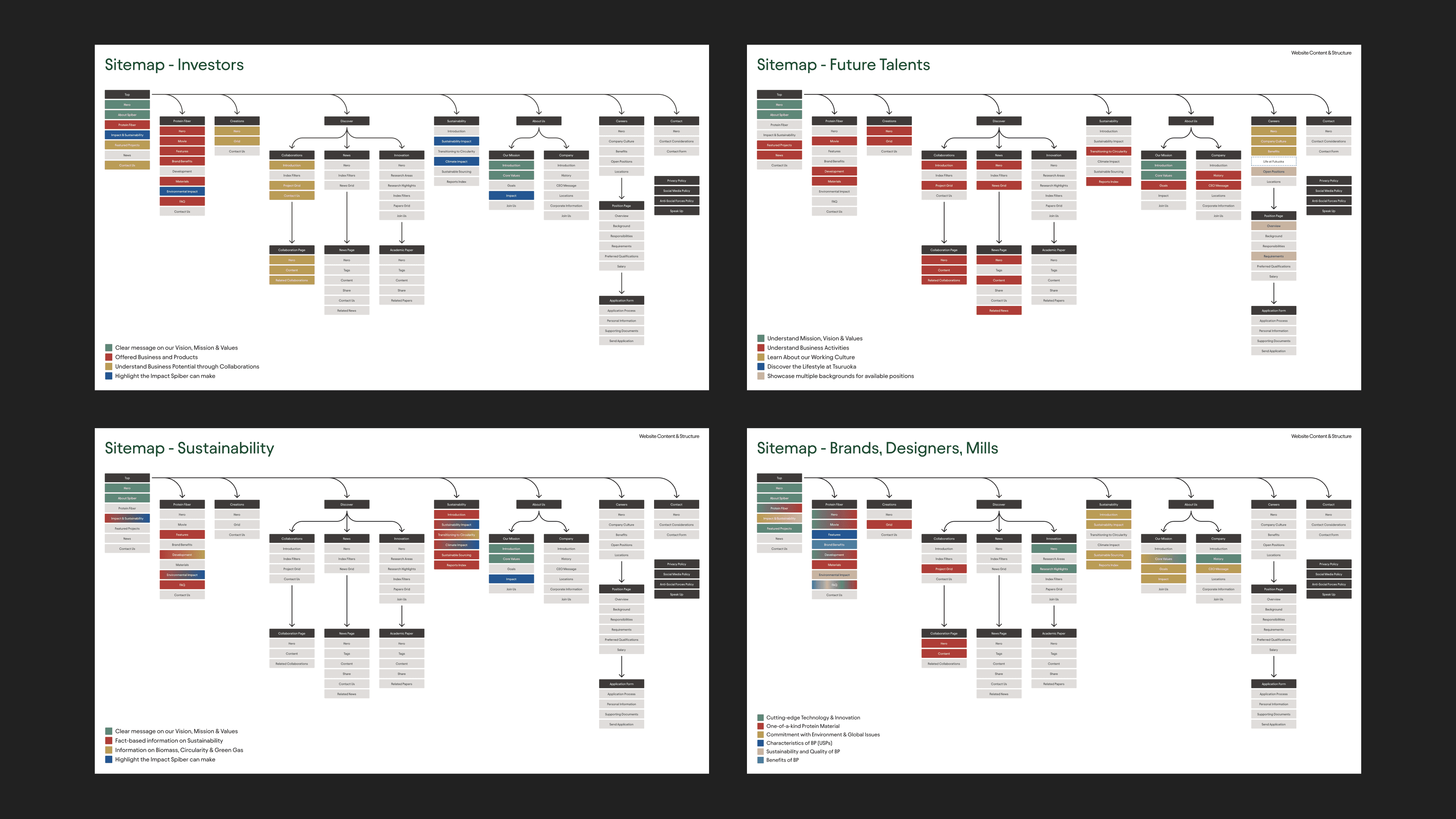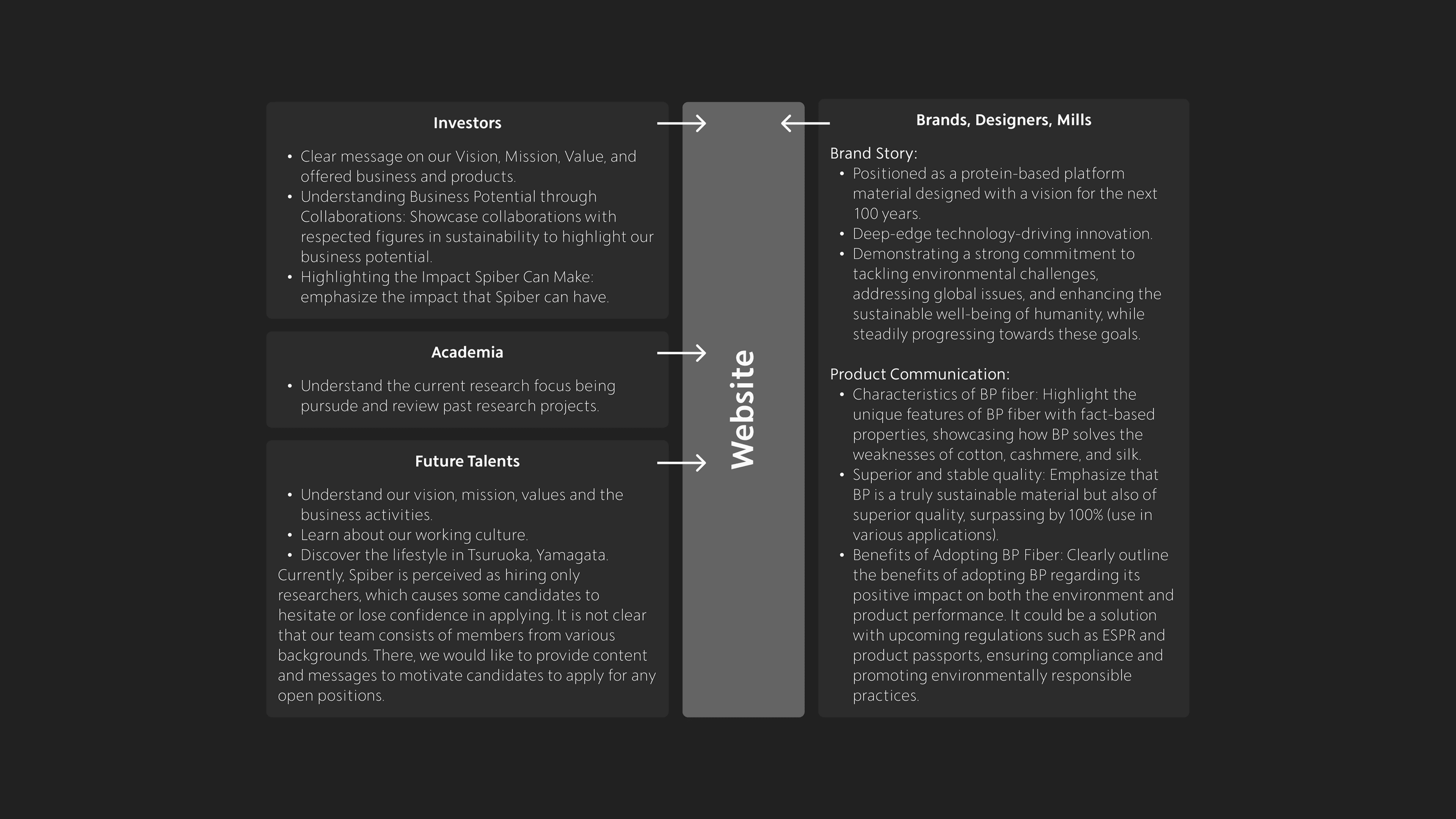 Our analysis showed that the original site was too dense, making it difficult for stakeholders like fashion brands and mills to quickly grasp Spiber's potential. We proposed a major shift in the information architecture to prioritize clarity and engagement.
