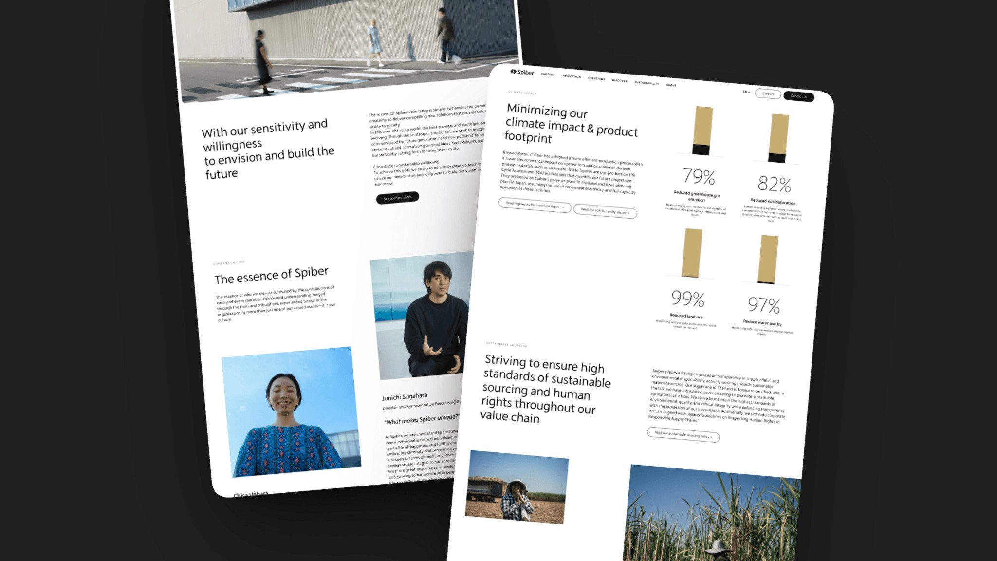 To support this visual shift, we visited the Spiber offices in Yamagata to capture the true essence of their work. I led the art direction for the photoshoot, working with the photographer to find a balance between a clean laboratory aesthetic and an organic, nature-inspired feel.