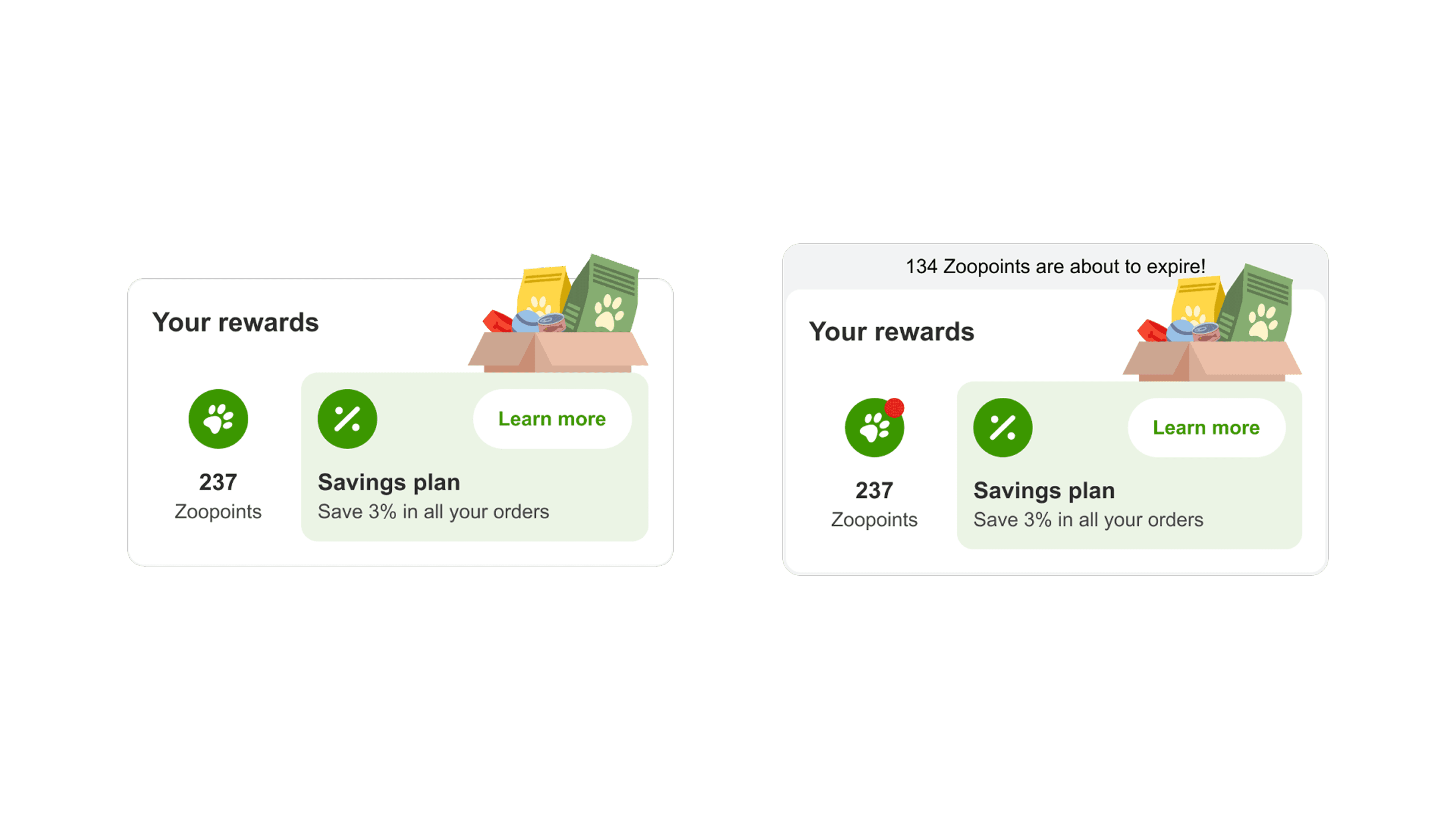 Over time, this success led to the creation of several distinct loyalty programs, from Zoopoints and personalized coupons to the Savings Plan subscription. However, because these features were developed by different internal teams, the user experience became fragmented.